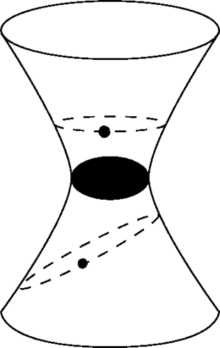 在广义相对论中,虫洞与黑洞有关。在黑洞中,物质坍缩成了一个点,或称为奇点。物质一旦进入黑洞,就永远被困住了。虫洞在外部有着同样的结构,但它的中心并非是一个奇点,而是形成了一种通向另一个空间区域或另一个宇宙的隧道。当物质进入虫洞时,便会穿过隧道前往另一边。虫洞的概念最初是由爱因斯坦和罗森提出的,因此有时它们也被称为爱因斯坦-罗森桥。