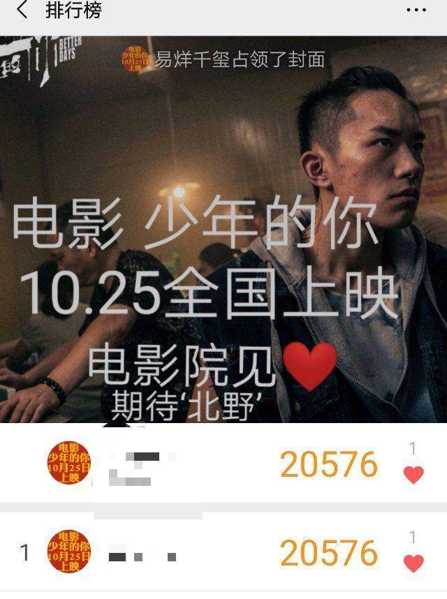 作为娱乐圈的顶级流量易烊千玺主演的首部电影,早在《少年的你》定档6月27日后,易烊千玺的粉丝“千纸鹤”和TFBOYS的粉丝“四叶草”们就都卯足了劲,誓要为偶像交出一份漂亮的成绩单。