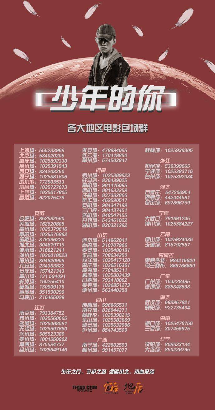 易烊千玺的粉丝组织众多,在六月还未撤档时,根据“一起拍电影”旗下公号“电影情报处”数据统计,包括易烊千玺官方后援会、TF家族后援会、易烊千玺后院联盟等就在全国组织了超过600场包场,初步集资包场费用近200万,参与包场应援的粉丝还有礼包赠送。