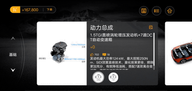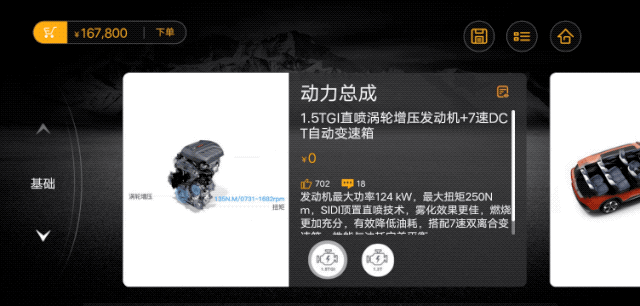动力总成部分的小问题是,目前只能通过点击“6MT”和“DCT”这两种不同变速箱来呈现发动机+变速箱的整个搭配。一般用户的习惯更偏向于首先通过发动机来选择,所以如果加入发动机的展示和选择会更好。