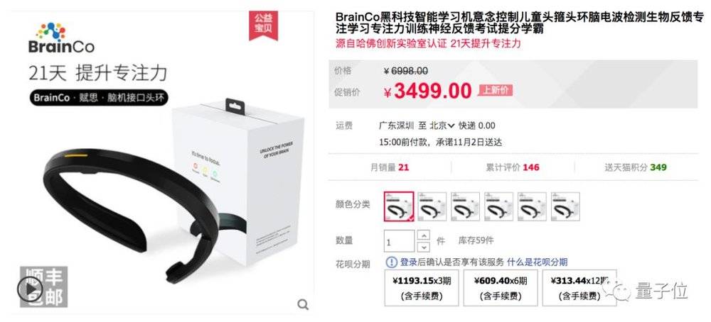 在这家公司的京东和天猫店铺中,这个头环的售价为3499元,如果需要购买几个可以替换的电极,还需要再加几百块钱。