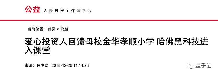 她“为了回馈母校,帮助母校学生提升学习效率,培养出更多优秀的人才”,决定“向孝顺镇中心小学捐赠50台全球领先的脑机接口技术产品——赋思头环(Focus1)”,并在中心小学建立赋思教育学堂。