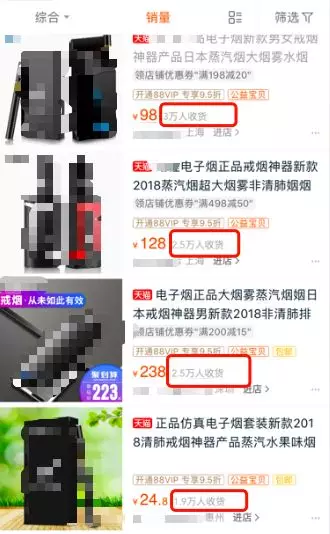 打开某宝、某东等电商APP,检索“戒烟神器”,会弹出成百上千款电子烟产品。随机询问几家销量较高的电子烟网店,商家均表示,所售电子烟“可以用来戒烟”。