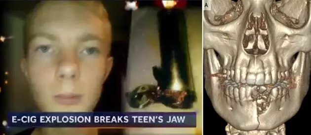 去年3月,犹他州一名中学生为了戒除传统香烟买了一款电子烟产品,抽着抽着,电子烟爆炸了。外科医生说,他们从来没有见过这样的电子烟爆炸案例,不仅牙齿被炸掉了几颗,下巴骨头部分断裂粉碎,部分牙龈组织已经被彻底炸没了。