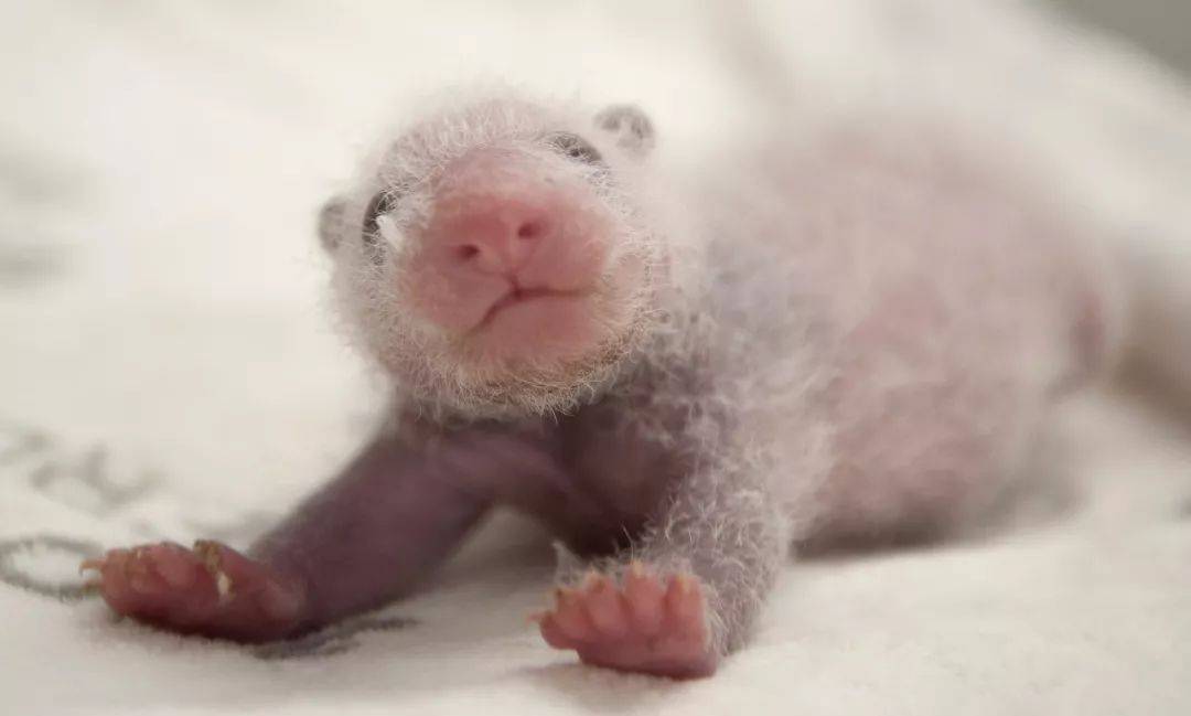 活得过初一,还得熬得过十五。刚出生的熊猫宝宝是粉嫩的肉球,15天左右,宝宝的肩带、四肢、耳朵的皮肤渐渐变黑(据说是为了伪装),稀疏的背毛也变得浓密,30天左右才有个熊猫样。不过,它们在6-7周后才能睁开眼睛看世界,60天后才有听觉,真正眼观六路、耳听八方,要到3个月以后。