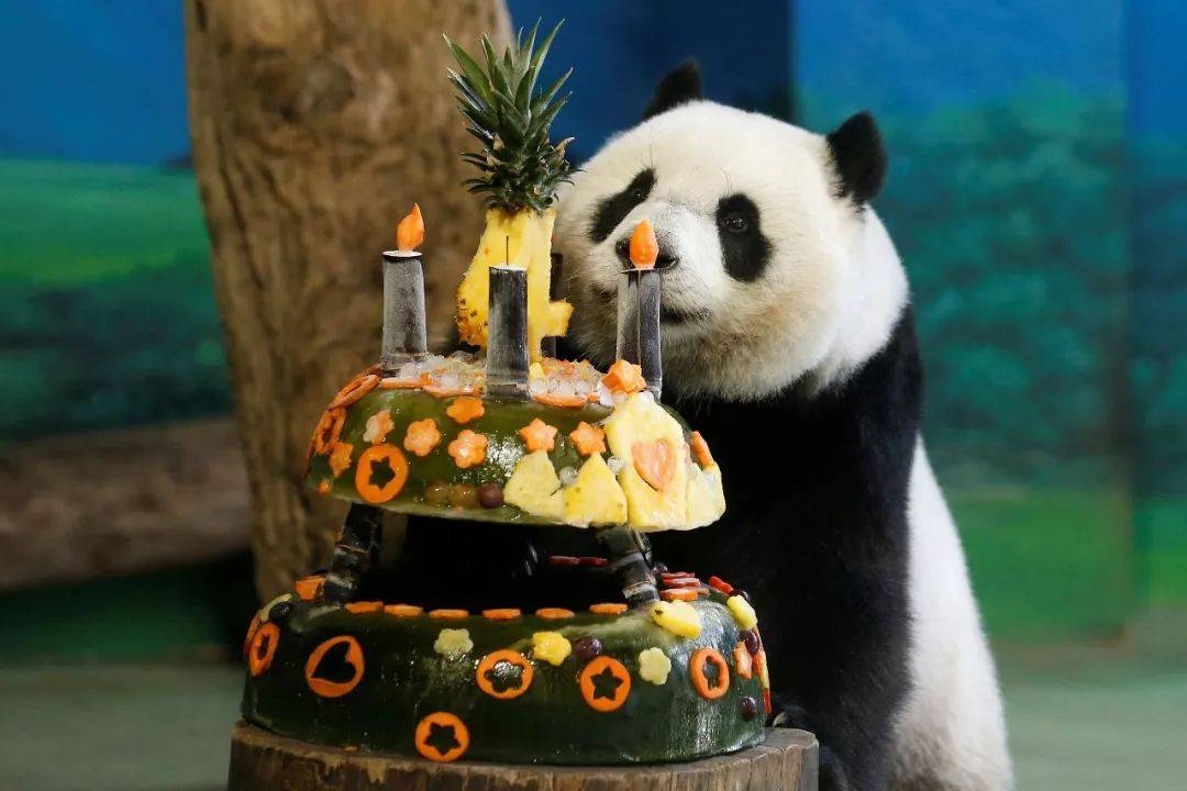 ▲ 2017年7月6日,台北,大熊猫“圆仔”4岁生日,正在享用水果生日蛋糕,他的妈妈是赠台大熊猫“圆圆”。供图/视觉中国
