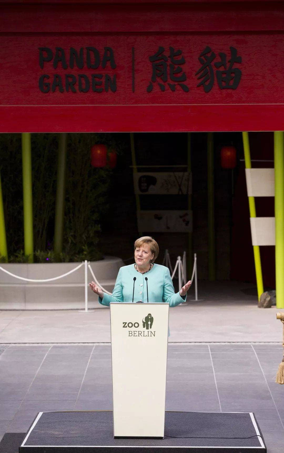 ▲ 2017年7月5日,德国柏林,为旅德大熊猫“梦梦”和“娇庆”打造的熊猫馆正式开馆,德国总理默克尔出席开馆仪式。供图/视觉中国