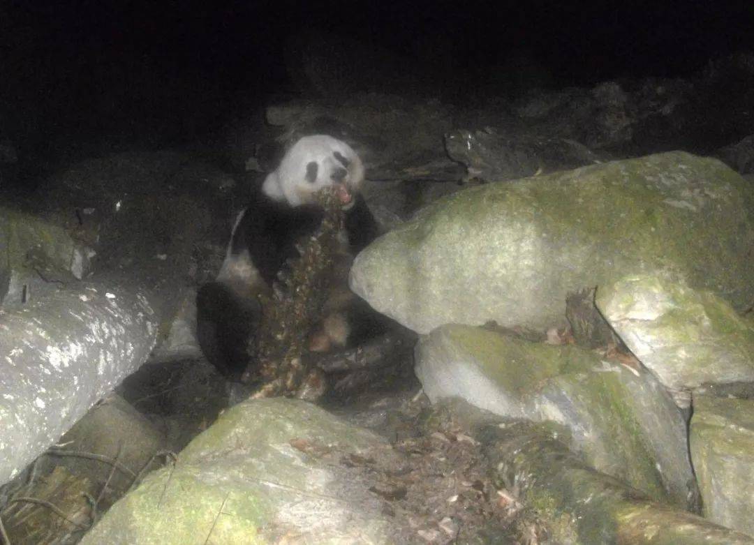 ▲ 2011年11月9日晚11时许至次日凌晨5时,安装在四川平武县老河沟林区的红外线相机,拍摄下一只野生大熊猫抓起牛羚尸体吃的全过程。供图/视觉中国