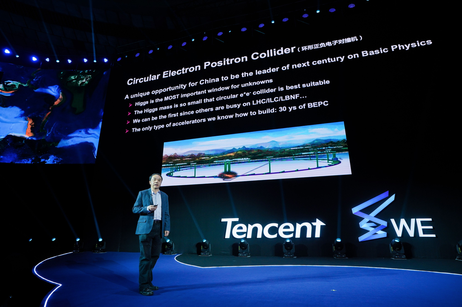 第一,希格斯粒子是粒子物理目前来说,一个最重要的窗口。第二,希格斯粒子质量刚好使得我们可以建设环形对撞机,而不需用直线对撞机来做的,相比来说这是一个最好的方案选择。第三,国际上我们很多的竞争对手(欧洲、美国、日本),他们的手上都有别的事情。第四,环形的正负电子对撞机刚好是我们会做的,我们有30年的北京正负电子对撞机的经验。
