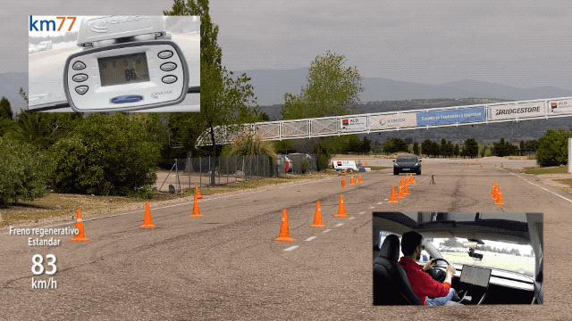 相信稍微了解麋鹿测试的都能明白,上面这个动图展示出的性能意味着什么。麋鹿测试就是假设路中间突然跳出一只麋鹿,车辆回避障碍的能力,主要针对汽车的转向、悬挂系统以及轮胎等整个底盘系统的试验,成绩就是保证不发生碰撞和失控时的最大速度。