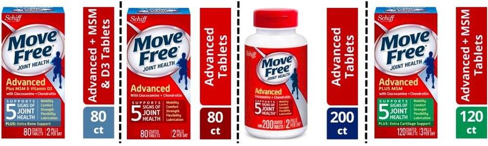 号称对关节好的保健品,时下最流行的一个牌子叫Move Free,是美国著名保健品公司Schiff的旗下品牌。常见的型号有下面几种: