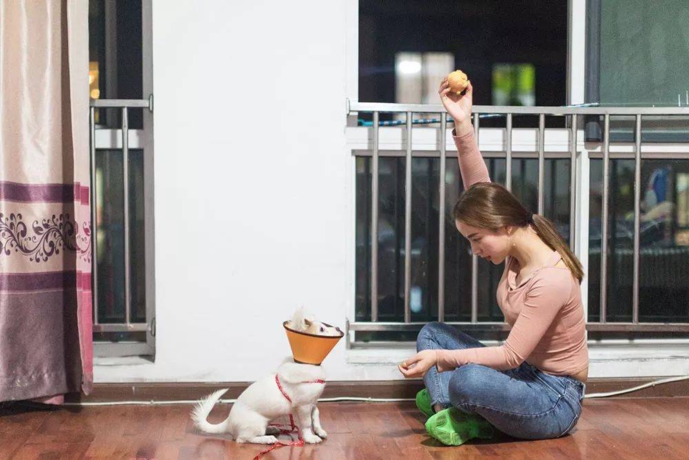 图:手语主播紫薇下班回家后,和自己的狗一起玩耍。摄影| 贺斌