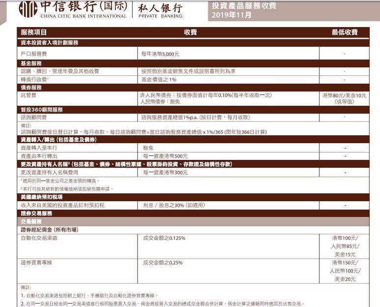 ▼ 附图:某私人银行部分项目收费表