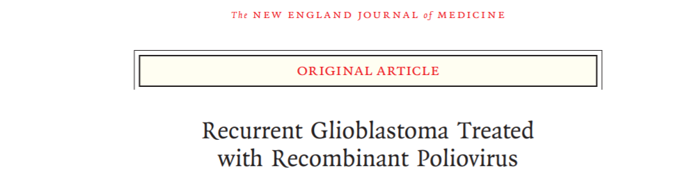 1. Recurrent Glioblastoma Treated withRecombinant Poliovirus. N Engl J Med 2018; 379:150-161