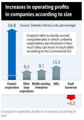 财阀靠着政策和资源上的倾斜,再利用手里的特权,在各行各业形成垄断,中小型企业举步维艰。