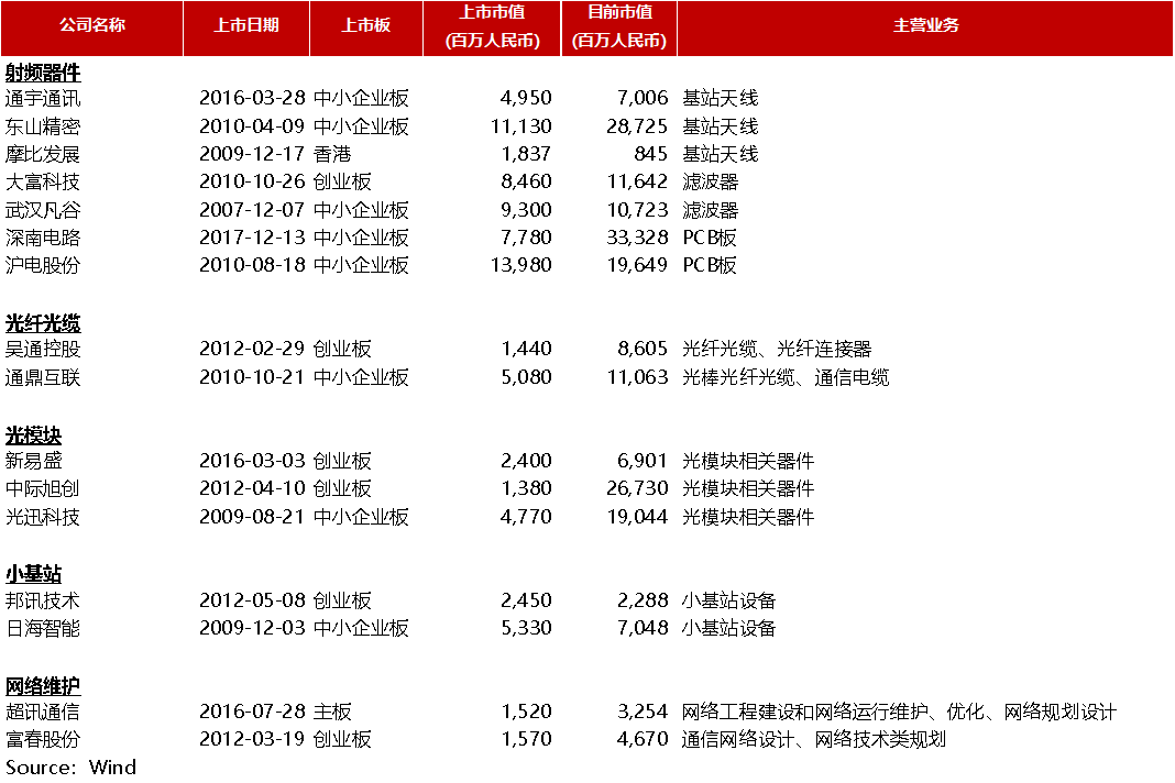 4G基站产业链相关上市公司不完全统计有16家,主要供应商基本都已上市。有4家4G设备供应链相关公司在4G建设中后期成功上市。另外部分公司来自设备商3G时期的供应商。