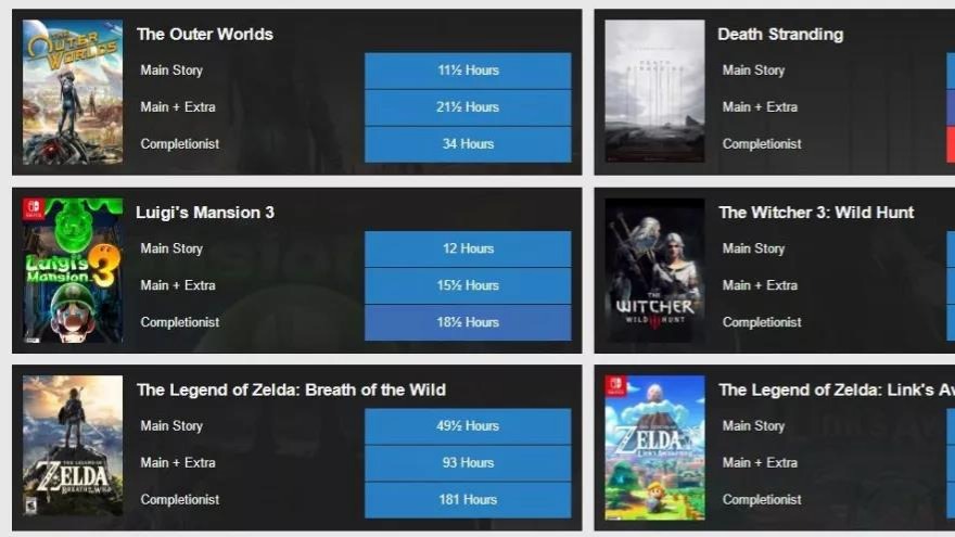 因此这里我们通过howlongtobeat.com这个网站,找到每款游戏的平均通关时间。再用每款游戏的平均游玩时间t1除以它的平均通关时间t2,就得到一款游戏的平均停留度。