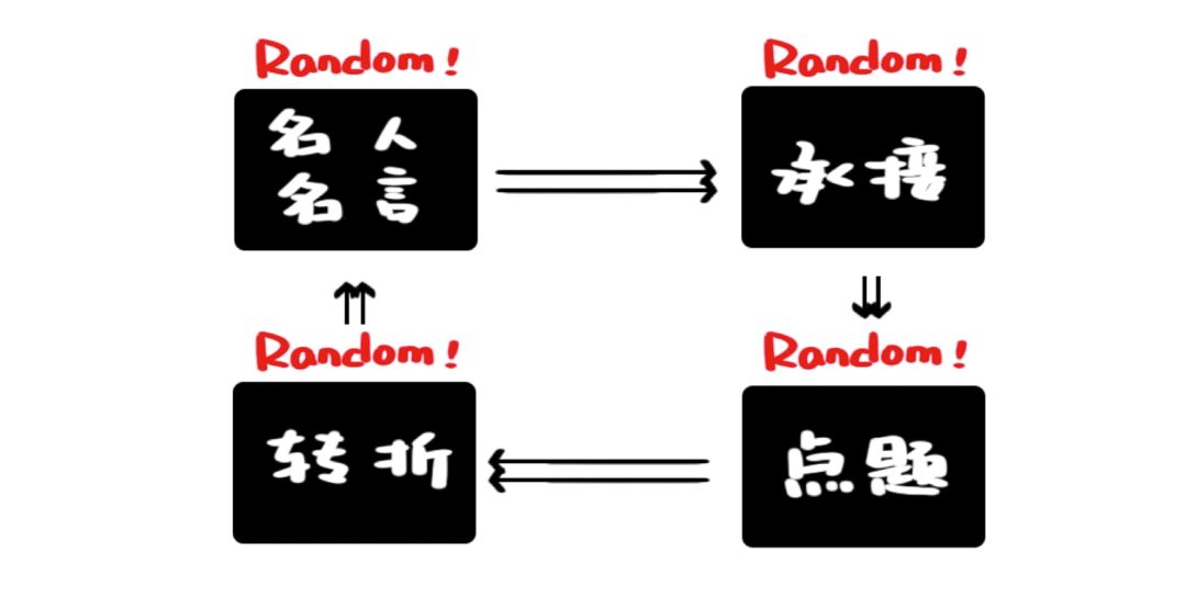 设置语句库,按顺序从中随机选取语句,再将它们组合起来。原理并不难,难得的是作者对套话文章的揣摩和创意。