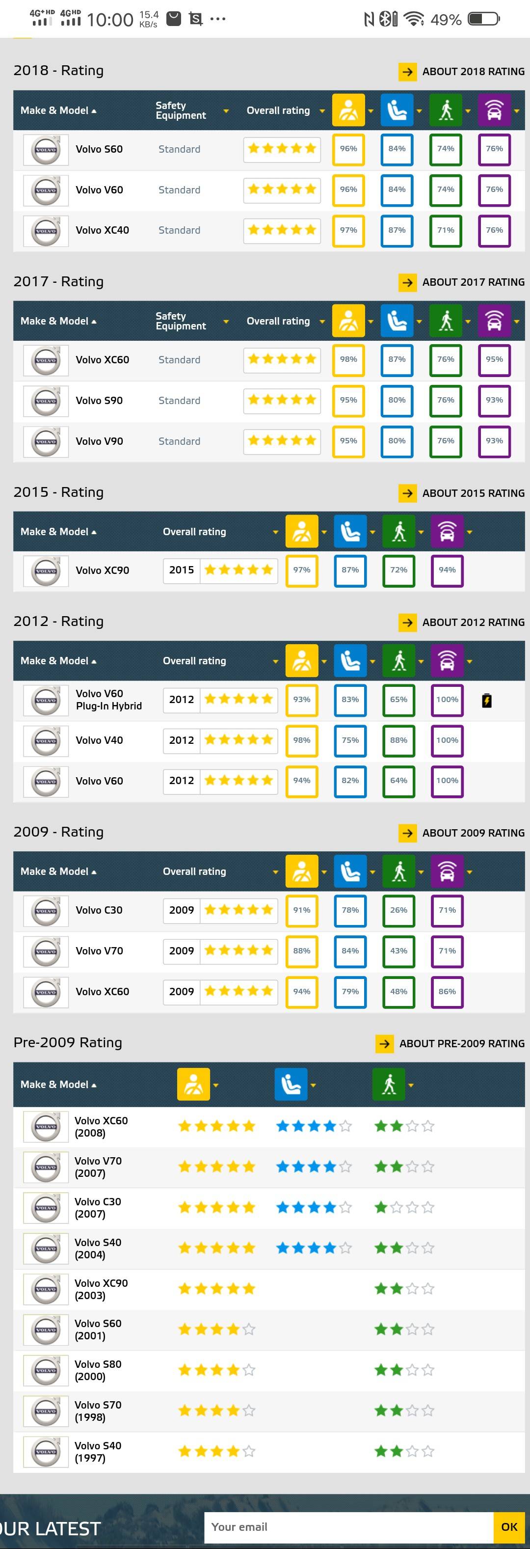 (EuroNCAP中所有年份Volvo车型碰撞评分)