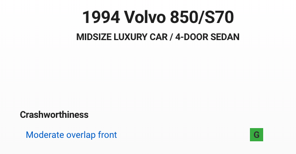 (1994年沃尔沃850/S70在IIHS的测试结果)