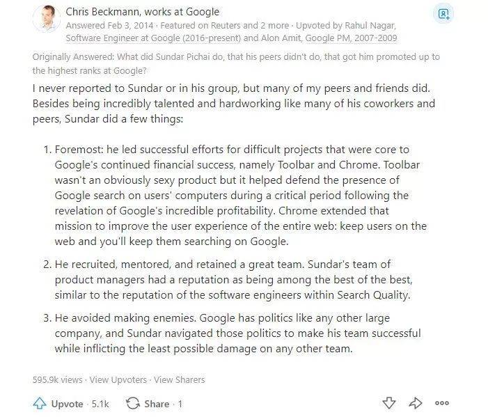 但实际上,正如本文所介绍,皮查伊在 Google 的地位提升,并非发生在最近几年。