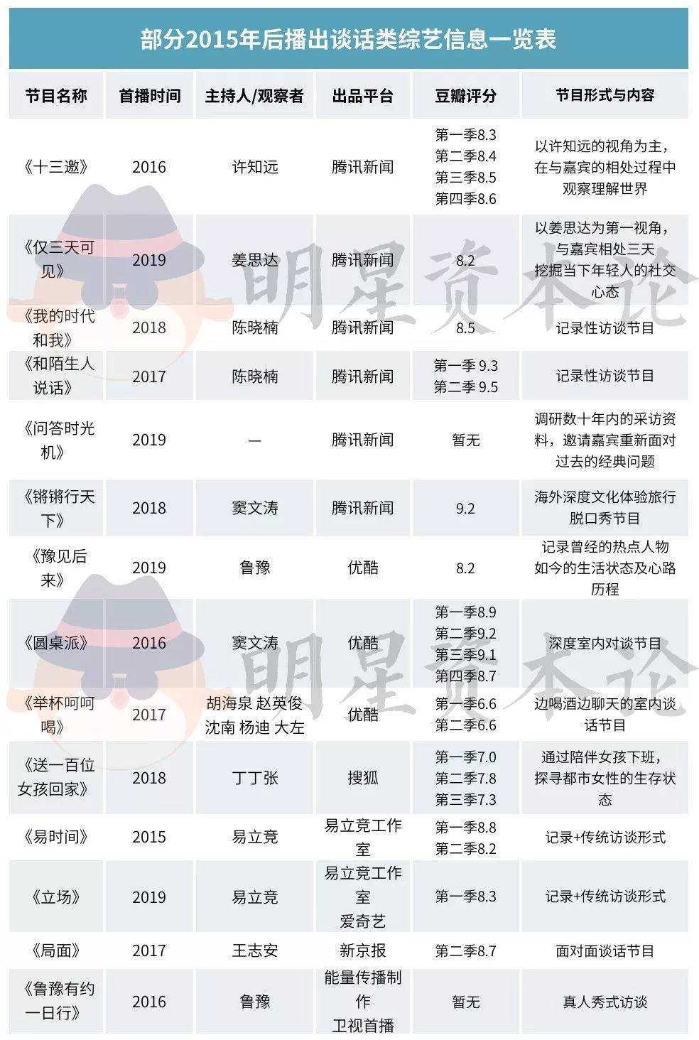 通过《圆桌派》连续四季的高口碑来看,只要话题足够吸引人,棚内聊天节目并不存在形式老套、过时的说法,甚至能够更集中深入的探讨某一个话题。比如窦文涛、马未都曾与爱豆鼻祖韩庚探讨偶像生态,与陈坤、周迅探讨友谊,都跳脱了过去纯粹讲述嘉宾人生经历的单一模式。