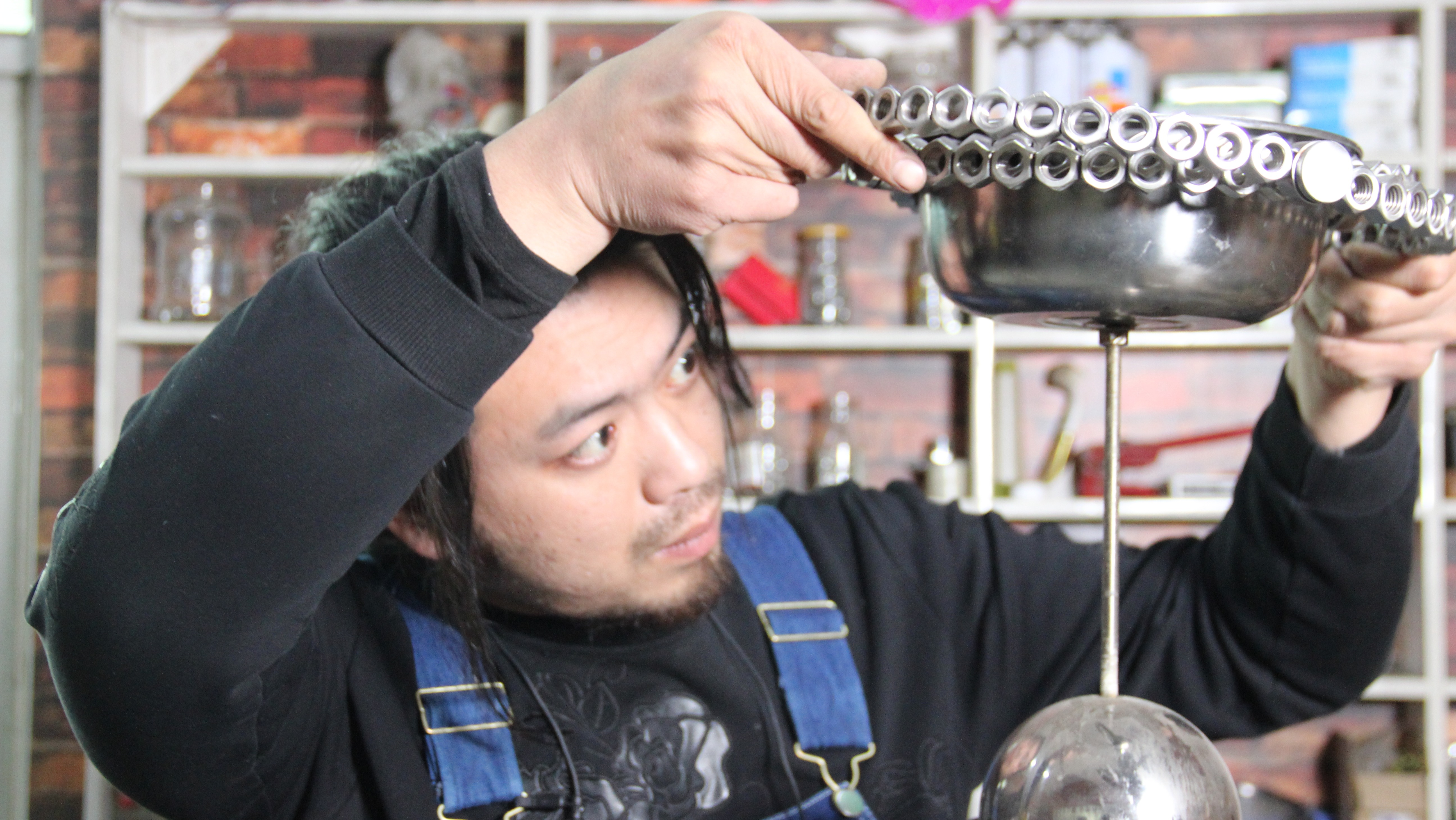 耿帅的父亲是一位焊工,他从小就会帮父亲做一些简单的零活。或许是受到了工厂氛围的影响,耿帅一直喜欢手艺活儿,小学时就能把家里挂钟拆解了又组装上。