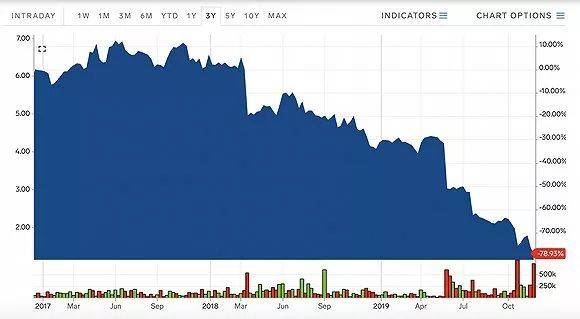 根据德纳罗上个月26日发布的2019/20半年报,其经调整收入较去年同期减少了4000万英镑,降幅达14.9%,经调整后营业利润则仅为220万英镑,降幅高达87.1%。过去两周,德纳罗的股价已下挫逾20%,而在短短两年间,该公司的市值也已缩水了超过四分之三,仅为1.4亿英镑,比半年报中的净负债还要少3000万英镑。