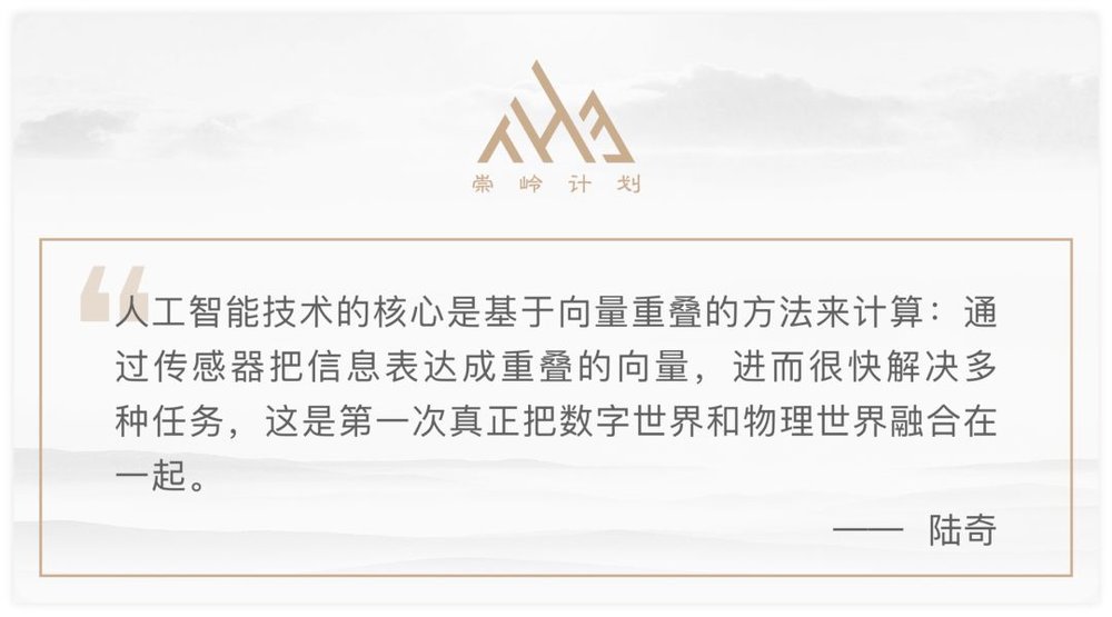 人工智能技术的核心是基于向量重叠的方法来计算:通过传感器把信息表达成重叠的向量,进而很快解决多种任务,这是第一次真正把数字世界和物理世界融合在一起。