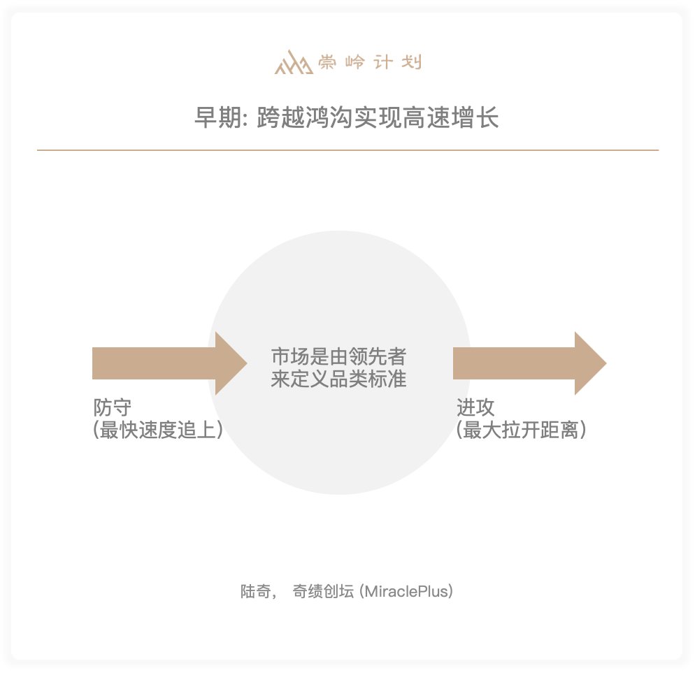 一张图可以清晰地表达,市场的领先者画出了一个圈,决定了赛道的标准,有特定的功能和体验,你才属于这个圆圈,进攻就是把这个圆圈越拉越大,防守就要用最快最便宜的方法追进圆圈。