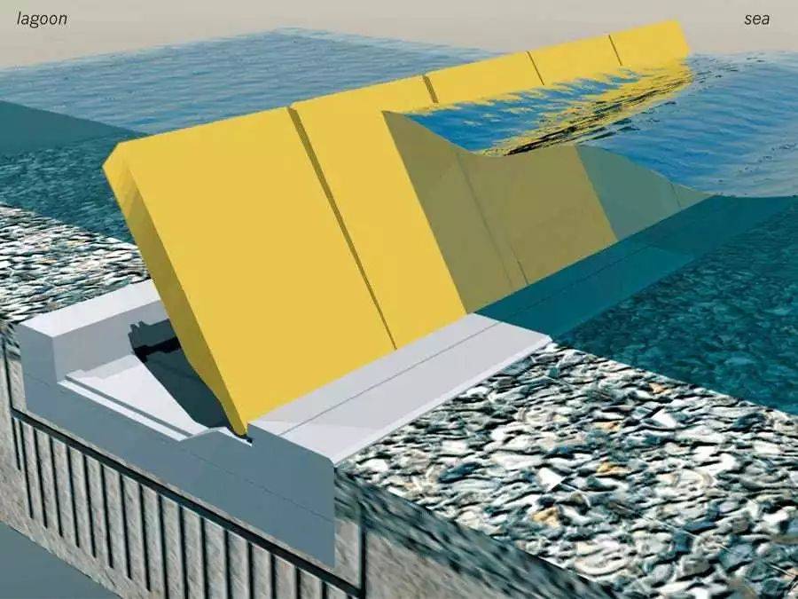 为了挽救威尼斯,自2003年开始,威尼斯就开始建设代号“摩西”(MOSE)的近海潮水拦截工程:这是一组以电力驱动的机械模块化堤坝,由70道巨大的黄色金属闸门组成,分布在亚得里亚海进入威尼斯泄湖的三个入口处。如果海浪袭来,这些闸门将被升起,将其拒之门外,保证泄湖水位不会大规模上升。