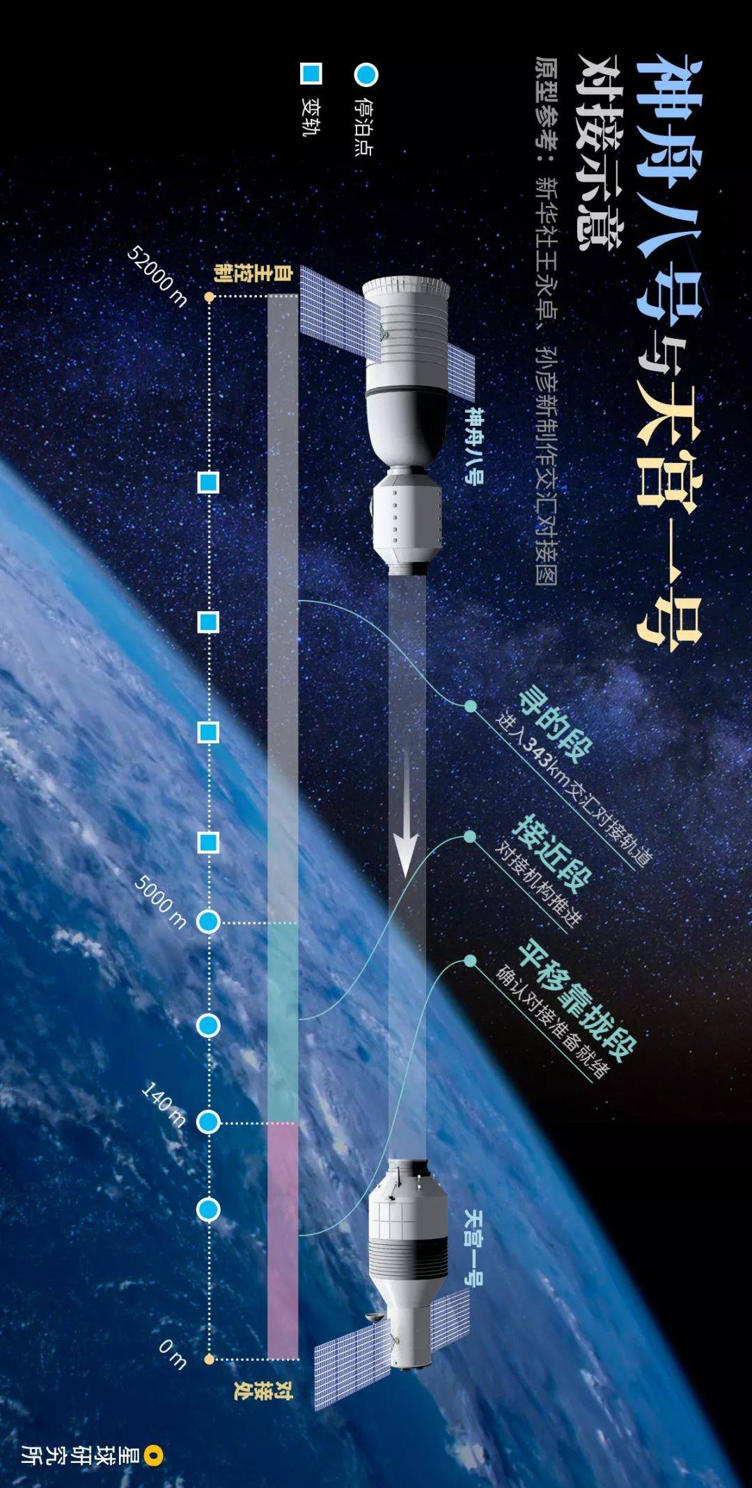 2011年11月3日凌晨,神舟八号进入轨道,它与天宫一号的距离,从1000米到100米、从100米到1米、从1米到几厘米……最终完美合体。