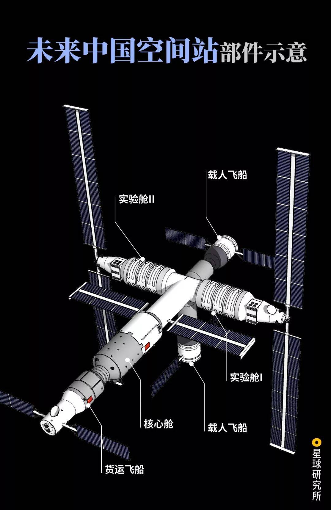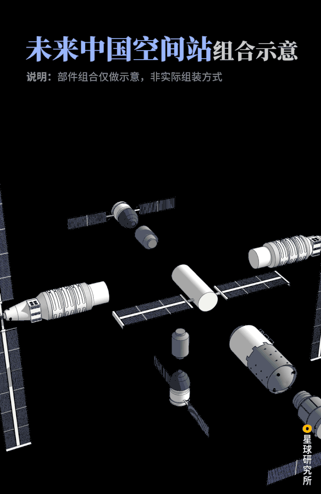 (未来中国空间站示意,制图@张靖/星球研究所)