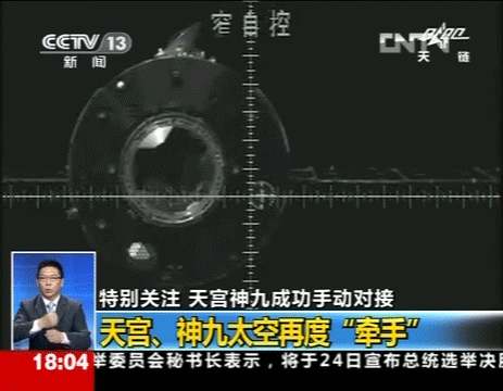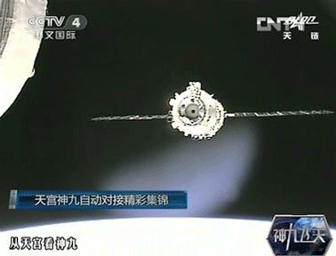 (神舟九号与天宫一号自动交会对接,图片源自@央视网)