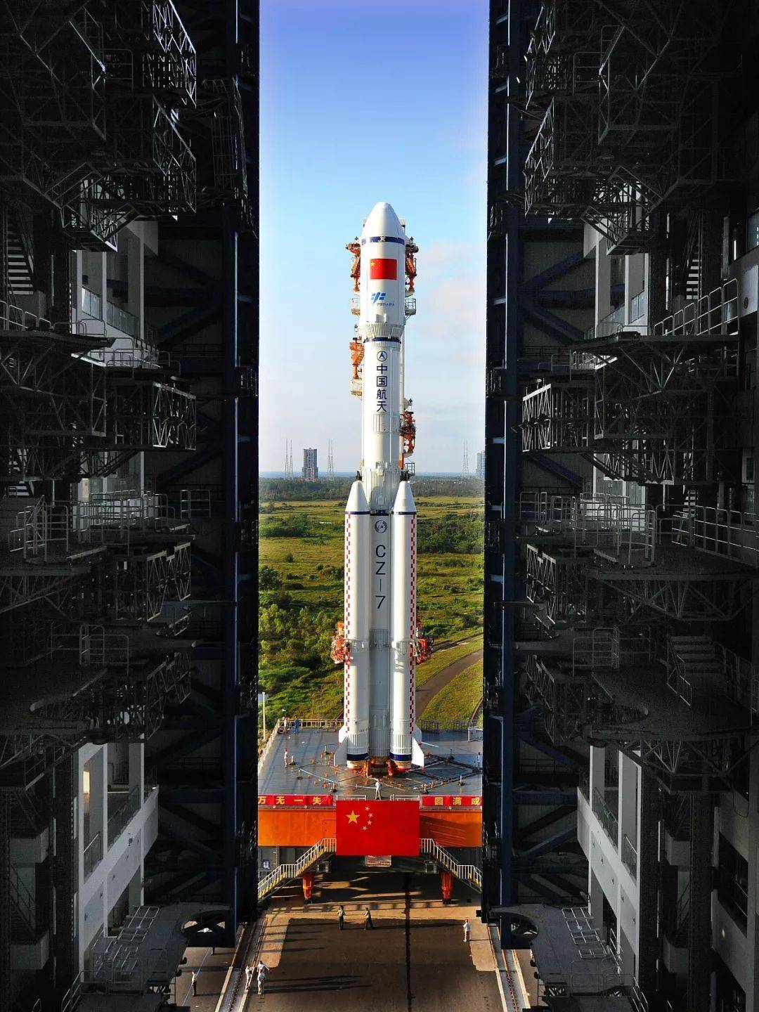 (2017年4月17日,海南文昌航天发射场,天舟一号与长征七号在做发射前的准备,图片源自@视觉中国)