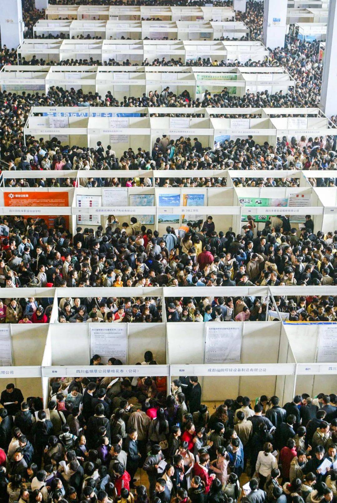 (2005年成都的一场招聘会,10万余名应届生参加,图片源自@视觉中国)