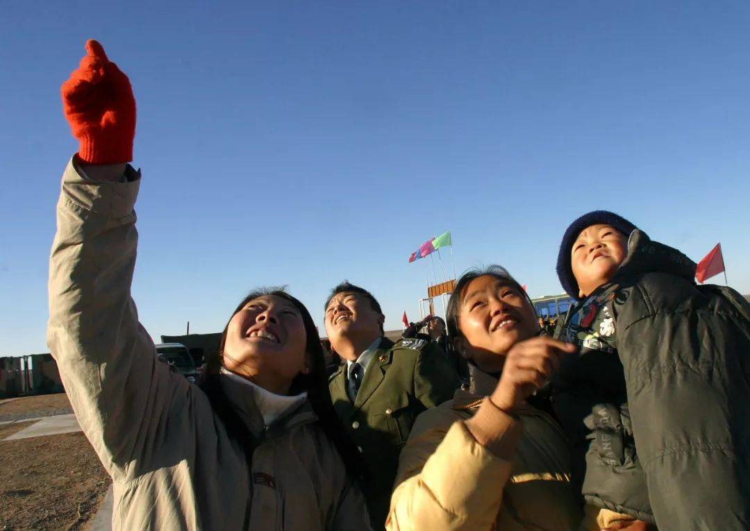 (神舟五号发射时望向天空的人们,图片源自@视觉中国)