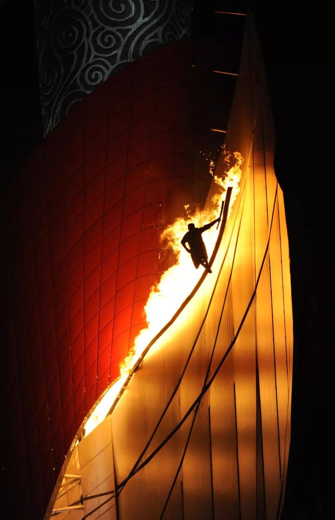 (2008年8月8日北京奥运会开幕式,李宁点燃奥运圣火,图片源自@视觉中国)
