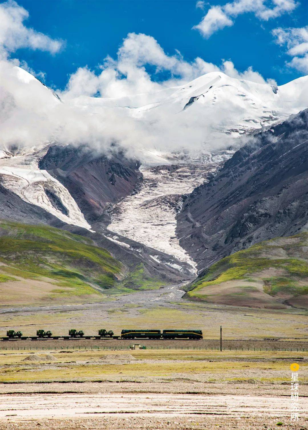 (昆仑山玉珠峰冰川与青藏铁路,摄影师@靳晰)