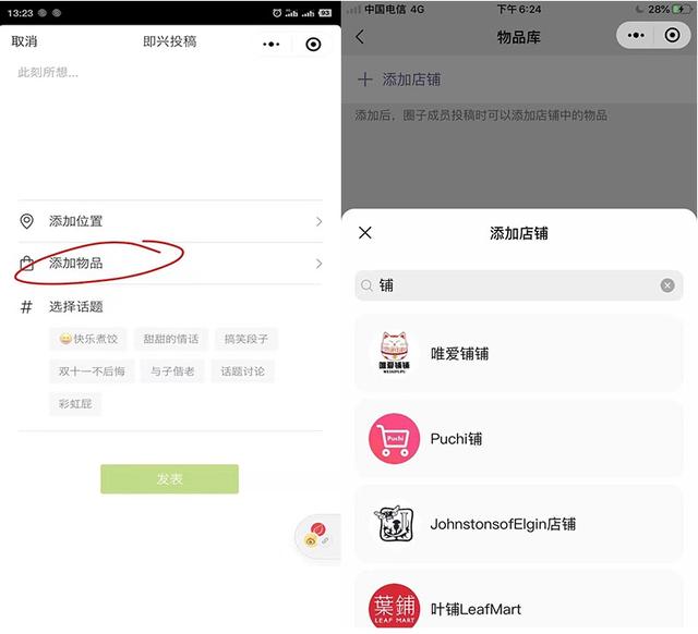 另外,导购的功能在保持原来发内容时可添加微信合作平台的商品之外,单个圈可以设置专属的店铺,以方便创作者来圈发布内容的时候,推荐圈主专属小程序店铺里的商品。