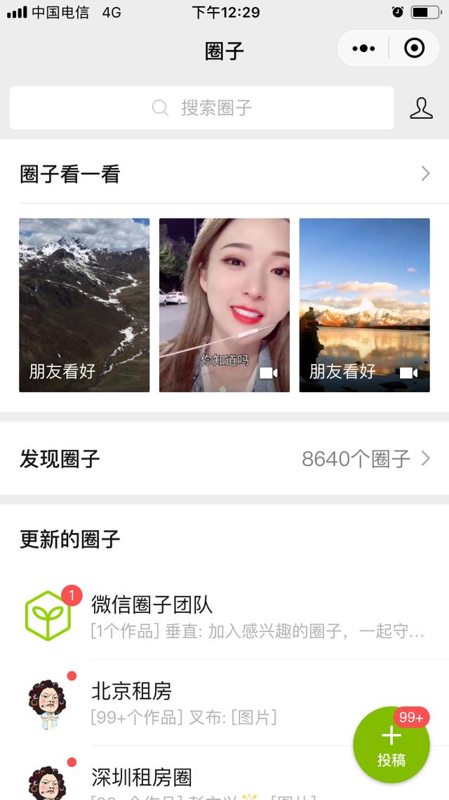 2.0版本的微信圈子,主页分为三个板块,【圈子看一看】、【发现圈子】和【加入的已更新圈子】。相比旧版本,强化了圈子看一看,这是沿用了去年还叫”我的购物清单“的功能,朋友看好的内容,才会出现在这里。同时弱化了发现圈子,只留中间的一个小位置,点击进去才能找到大分类,而已经加入的圈子则位置不变。