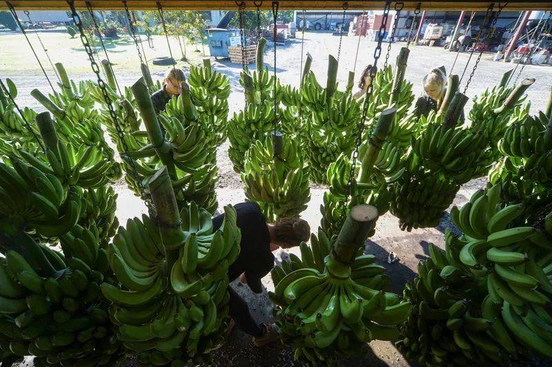 澳大利亚农场的工人正在检查丰收的香蕉。| 来源:Carla Gottgens/Bloomberg/Getty