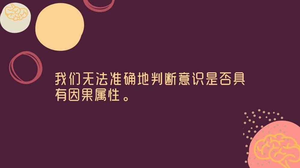 观看球赛时,有些许不理性的狂热也无妨。但如果要决定一个杀人犯是否应当基于精神失常获得减刑,或是判断你十几岁的女儿是否真的在不遗余力地学习代数时,不理性的狂热显然不妥。我们无法准确地判断意识是否具有因果特性。如果你对此存疑,请试着设想这样一个实验场景:在这个场景中,你可以客观地认识到,有意识的想法是任何行为的充要条件。