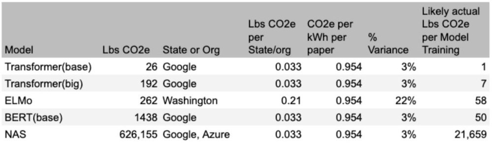 该论文假设模型训练的假设值为CO2e = 0.954pt(每千瓦时0.954磅二氧化碳当量)。这是美国的平均水平,而当Michael看到的时侯,他认为这个值可能被夸大了。