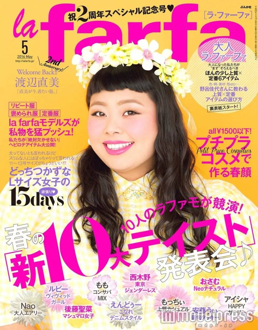 “ぽっちゃり女子”,在日语中是对身材比较丰满的女性的一种称呼,且多带有正面色彩。2014 年 3 月,日本杂志《la farfa》出版,这是日本第一本专为“ぽっちゃり女子”定制的时尚杂志。渡边直美多次被邀请担任杂志的封面女郎,且常常创造 10 万本以上的销量。作为备受瞩目的“ぽっちゃり女子”,杂志出版方希望渡边的影响力可以让“ぽっちゃり女子”彻底成为一种流行。