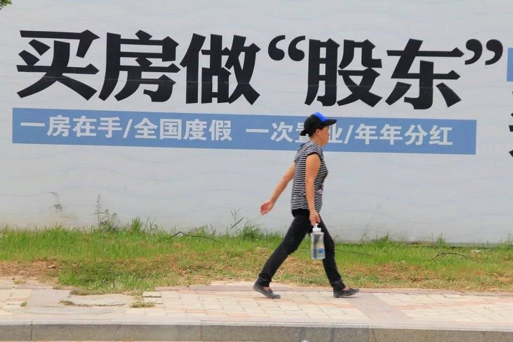 △行人从三亚市一处“买房做‘’股东”的楼盘宣传广告前经过/图虫创意