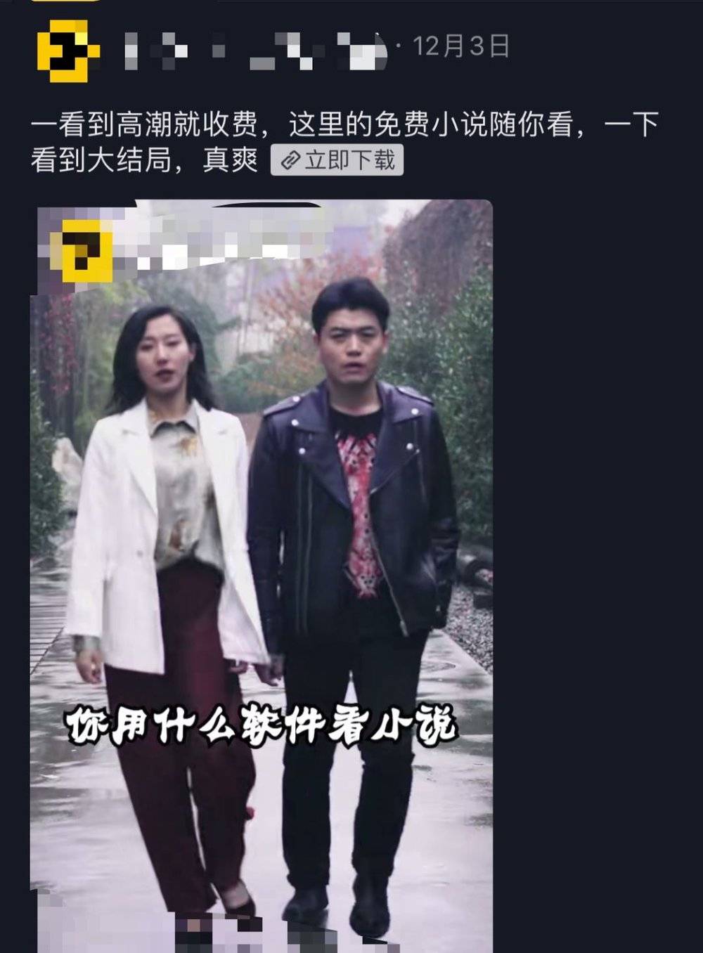 早期短视频平台上的小说广告