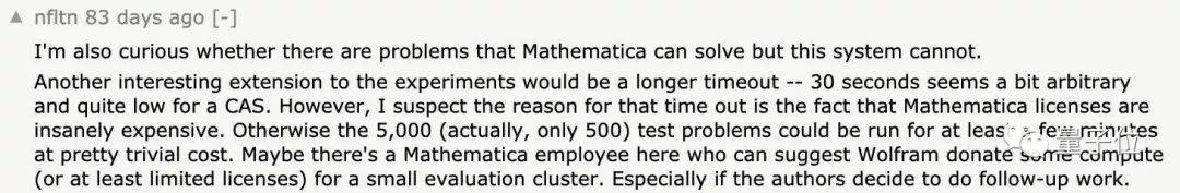 不过,也有网友认为,在与Mathematica的对比上,研究人员的实验设定显得不够严谨。