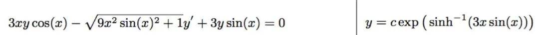 这样一来,想做出“一阶常微分方程&解”的成对数据集,只要生成一个f(x,c),对c有解的那种,再找出它满足的微分方程F就可以了,比如: