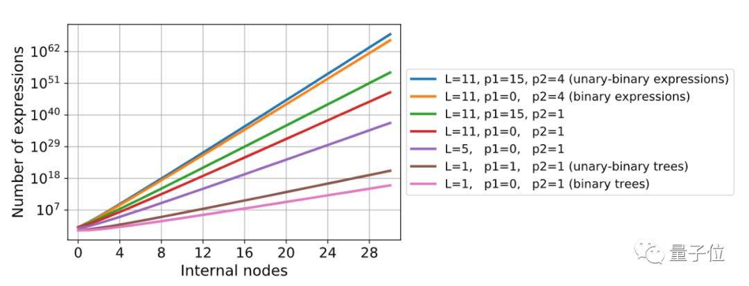 可以观察到,叶子节点和二元运算符的数量会明显影响问题空间的大小。
